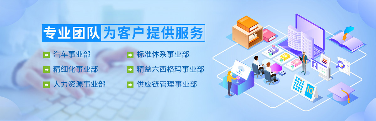 集團下屬業務劃分為:汽車事業部、標準體系事業部、供應鏈管理事業部、精細化事業部、精益六西格瑪事業部、人力資源事業部6大事業部,專業為客戶提供各個領域的專業服務。